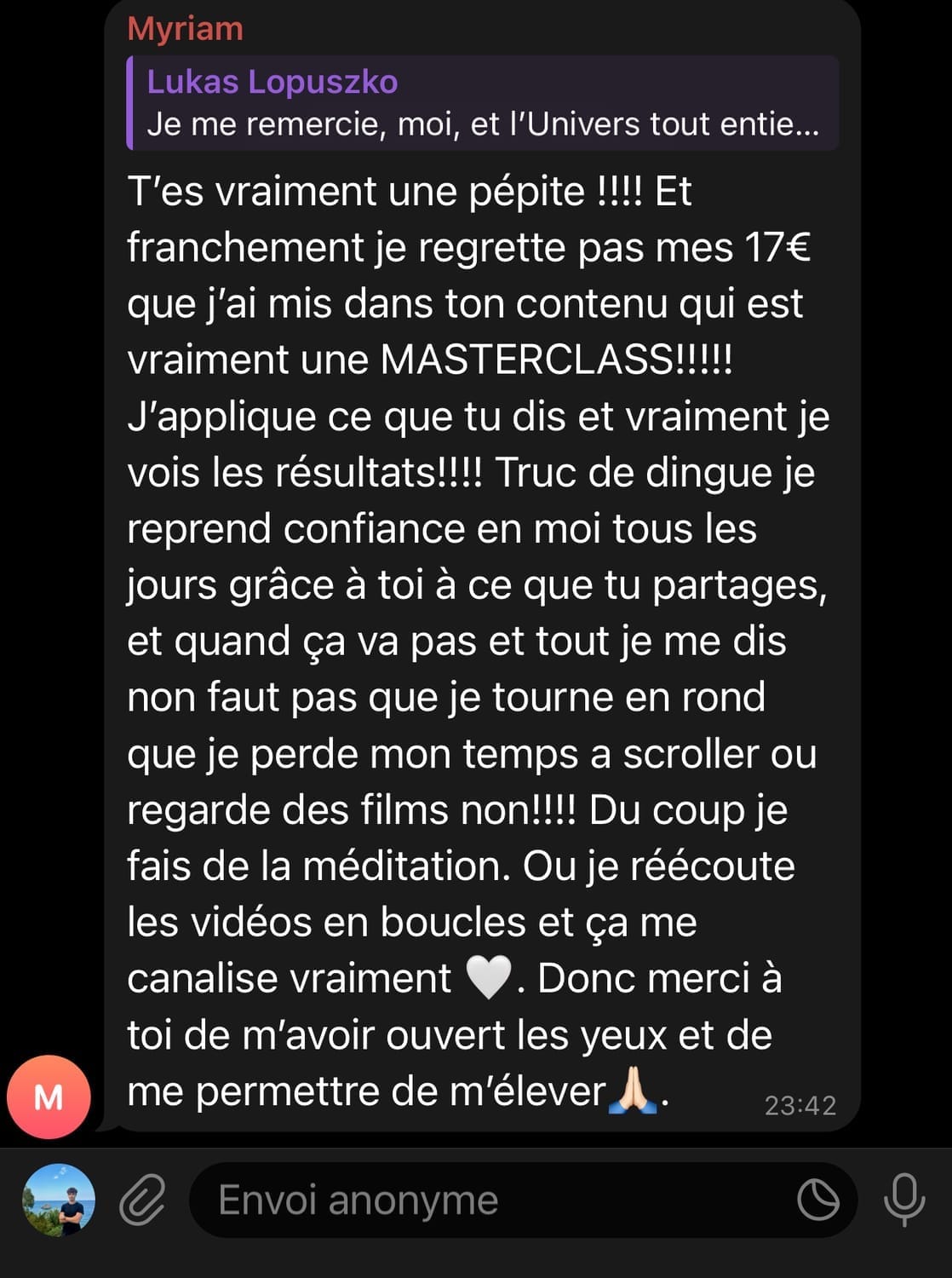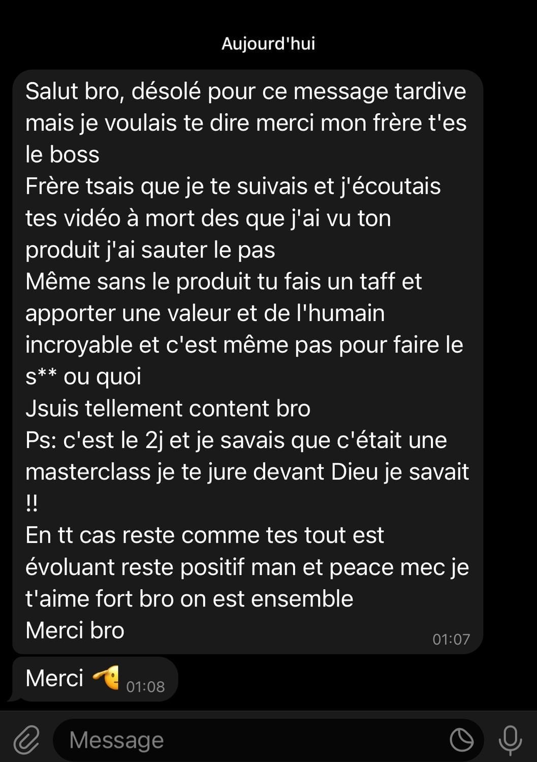 🌟 Un module bonus qui content 29 minutes de vocaux privés entre entrepreneurs sur les secrets de l'Univers que personne ne t'a jamais révélé.