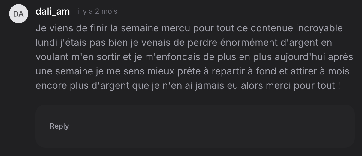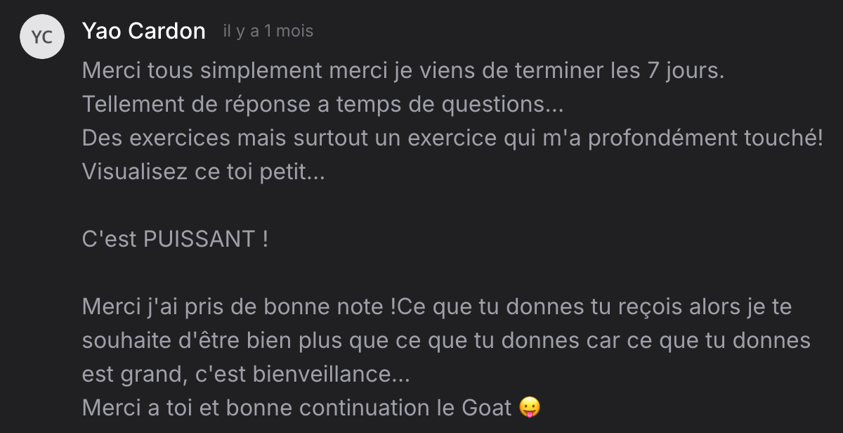 Un challenge de 7 jours format vidéos qui va te révéler comment activer les leviers mentaux et énergétiques pour attirer à toi l’argent, les bonnes rencontres et les opportunités — sans forcer.